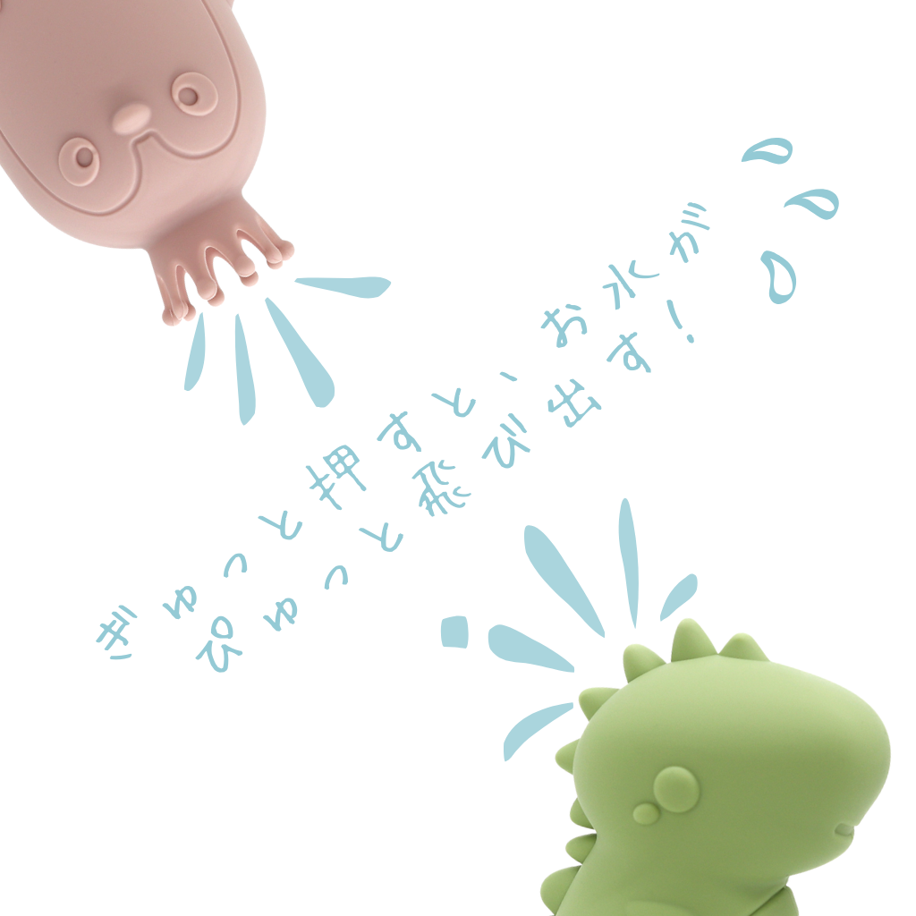 ぎゅっと押すと水がピュッと飛び出し、シャワー遊びも楽しめます。