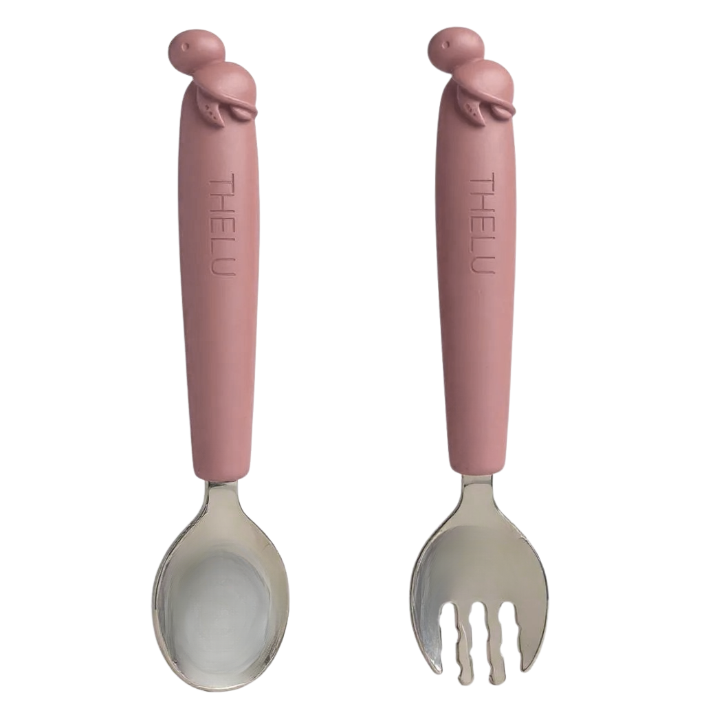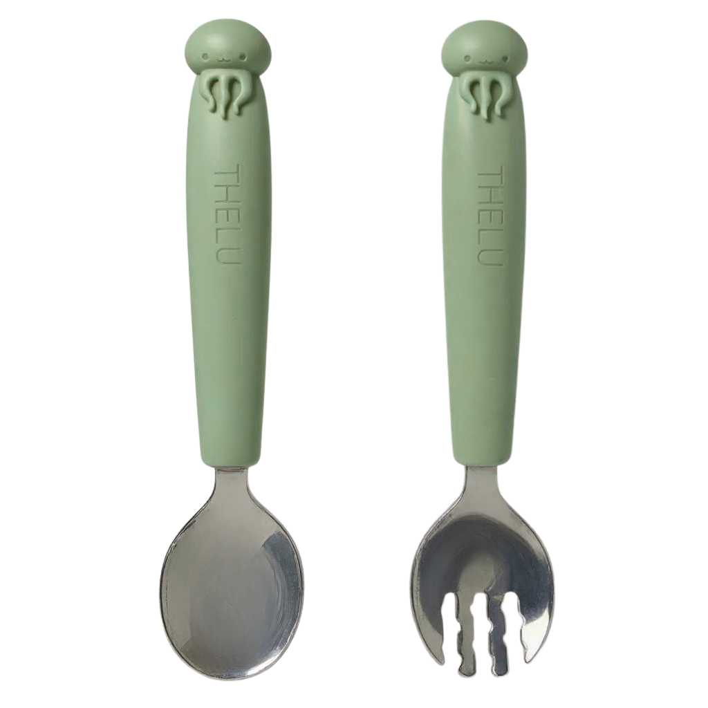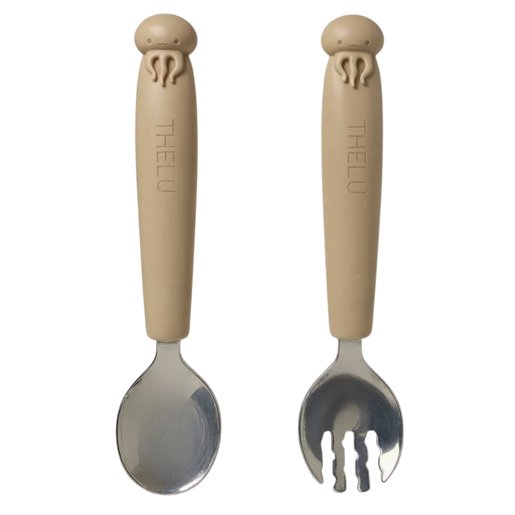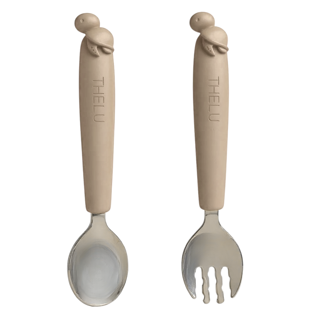 短めのフォークとスプーンは握りやすく、初めての自分食べ練習にも◎