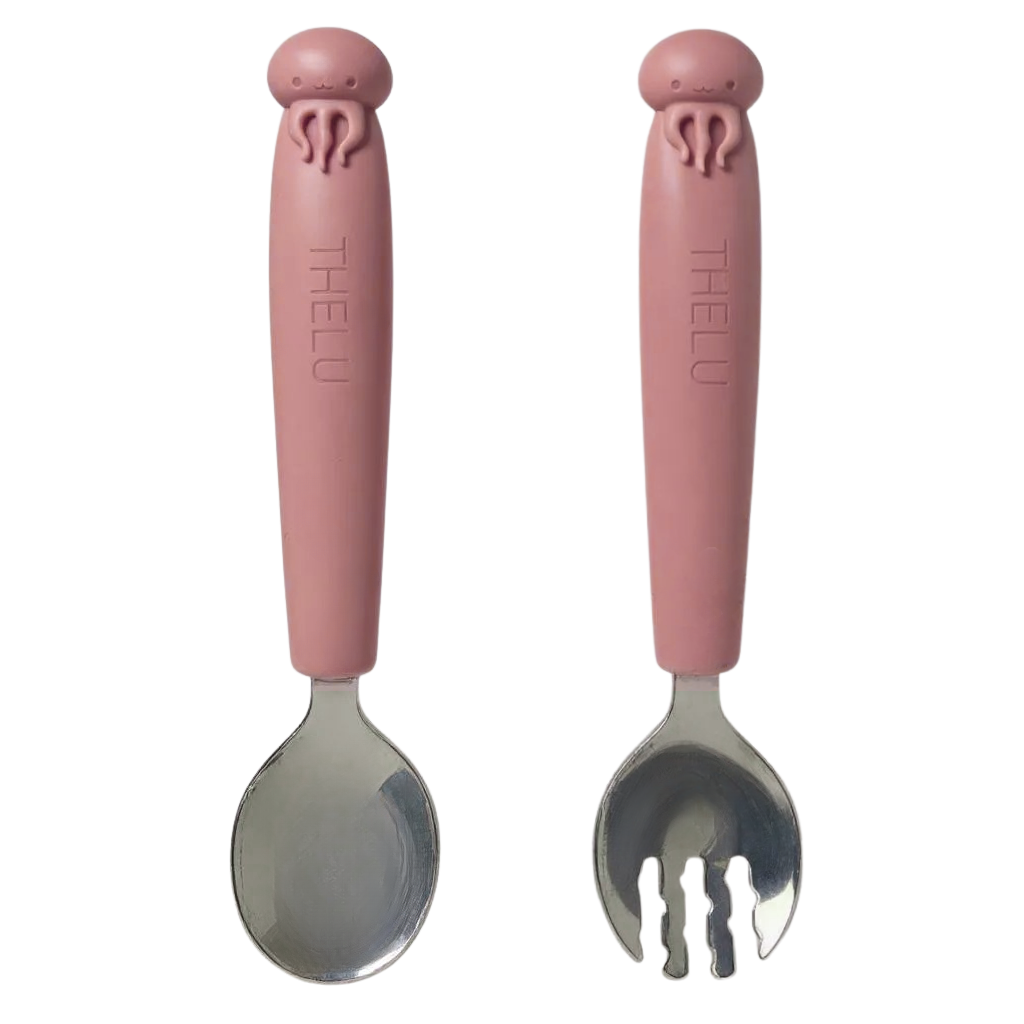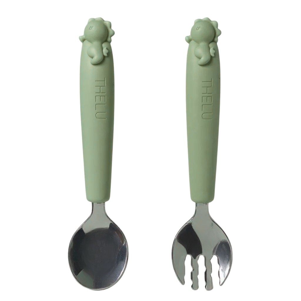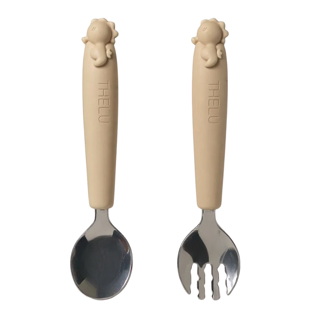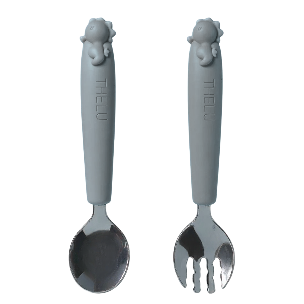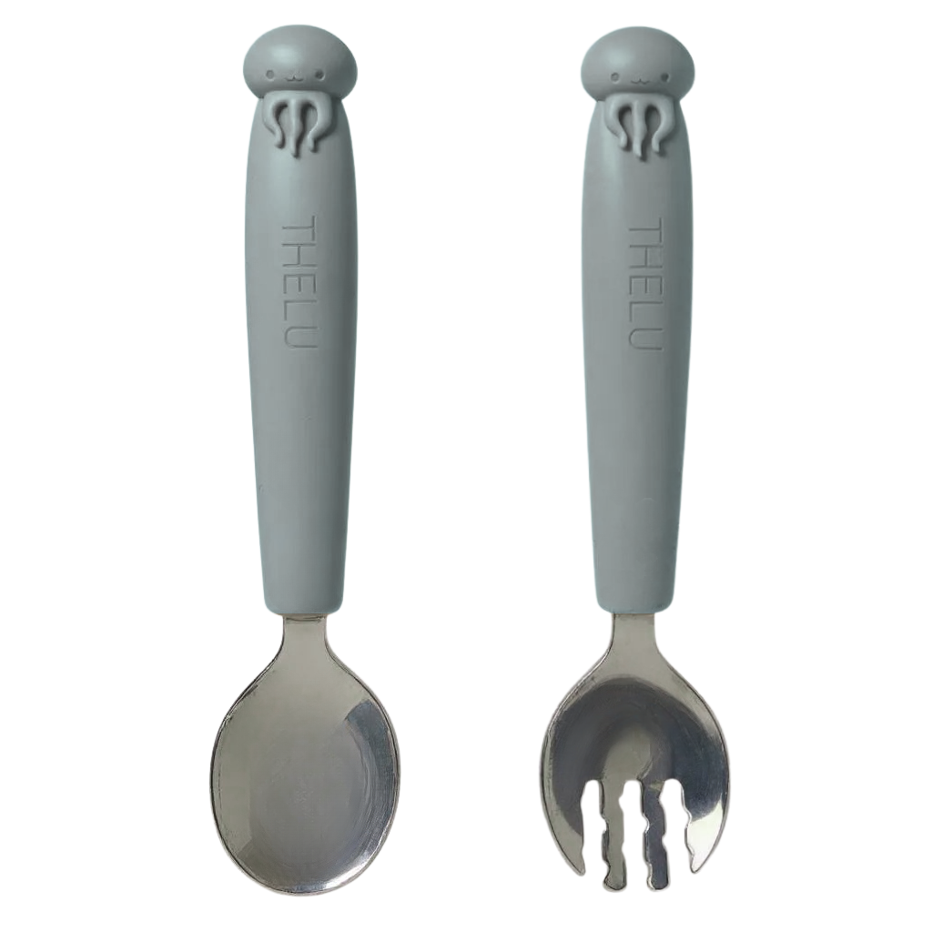 短めのフォークとスプーンは握りやすく、初めての自分食べ練習にも◎