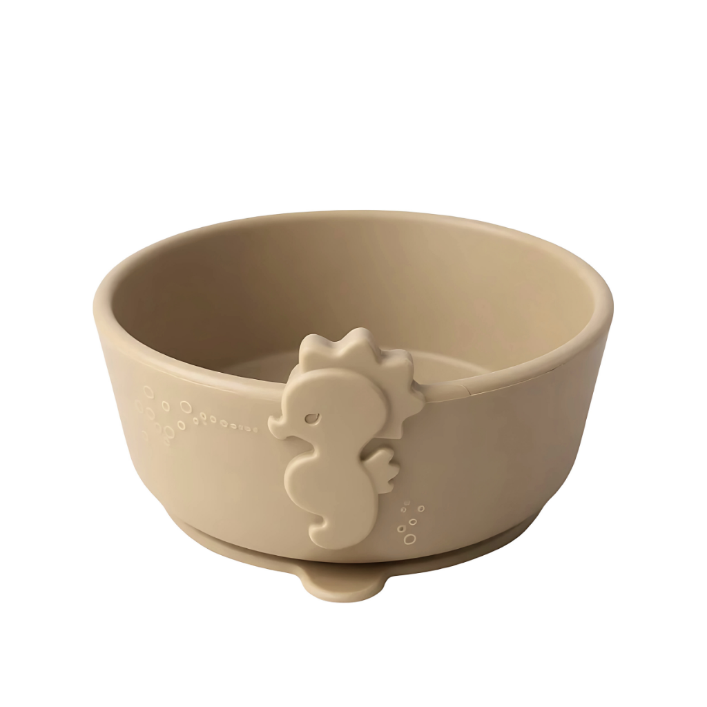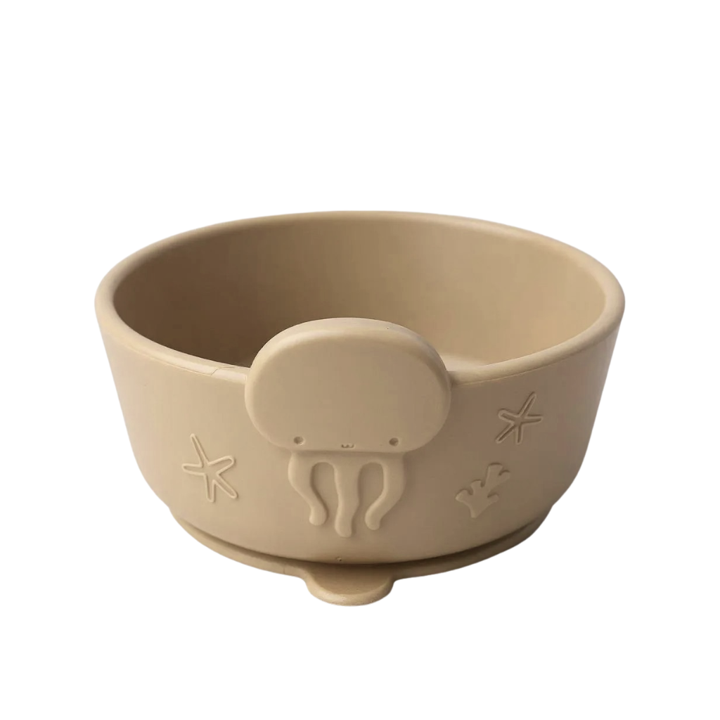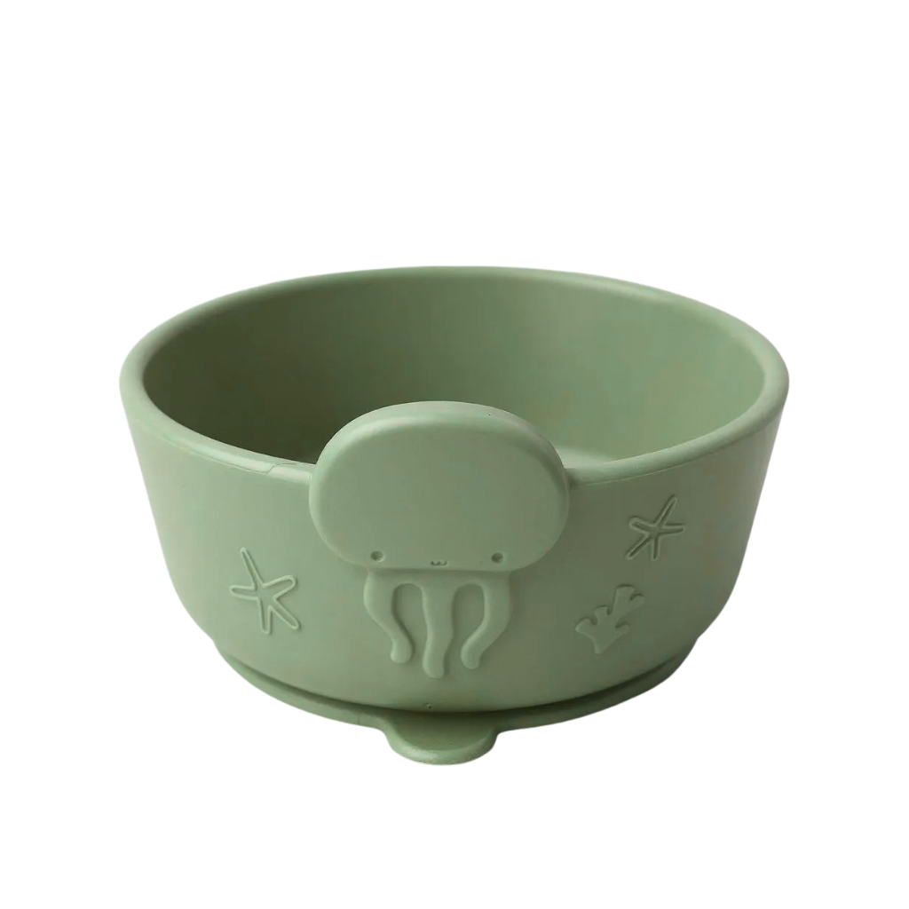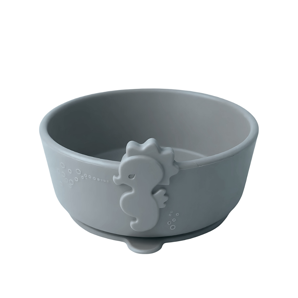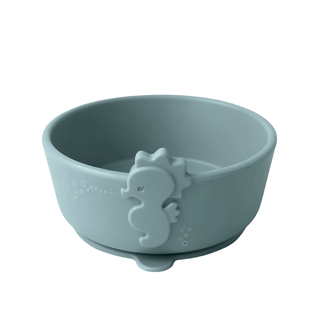 「うみともボウルセット」は、海の生き物をモチーフにしたデザインで、お子さまの「食べたい!」気持ちを引き出すシリコーン製のボウル&カトラリーセットです。