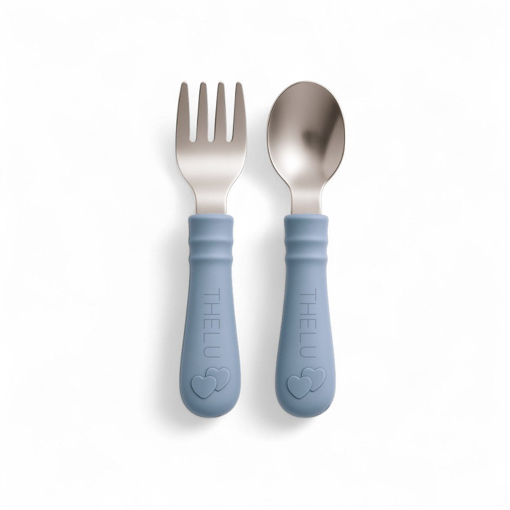 シンプルで上品なステンレスの先端に、手になじむやわらかいシリコーン製の持ち手を組み合わせました。持ち手には、さりげないレーザー刻印のブランドロゴ「THELU」と、愛らしい2つのハートがあしらわれています。
