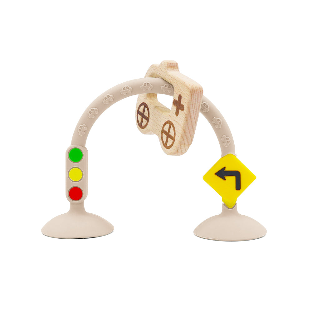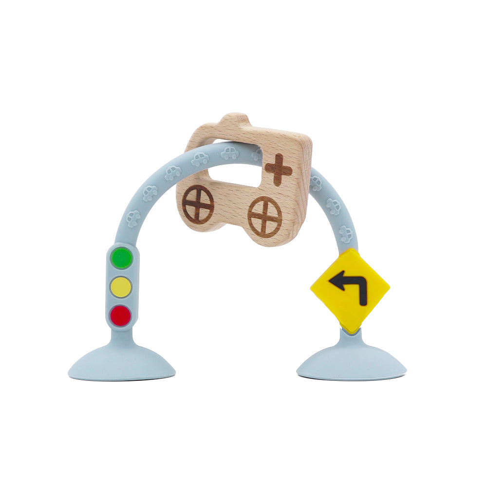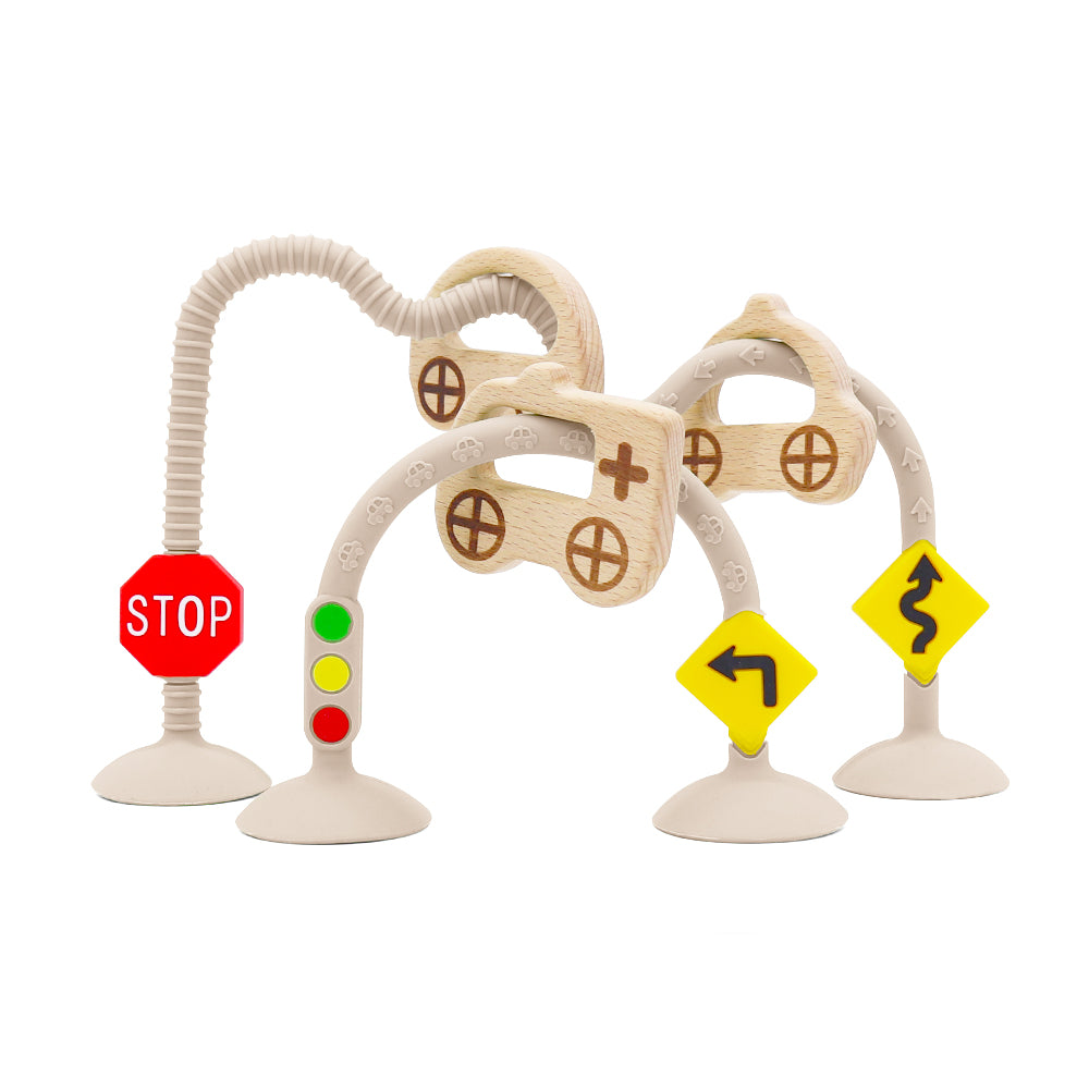 STOPサインやカーブ・信号標識付き。交通ルールを自然に学べるデザインで、まるで本物の道路みたい!