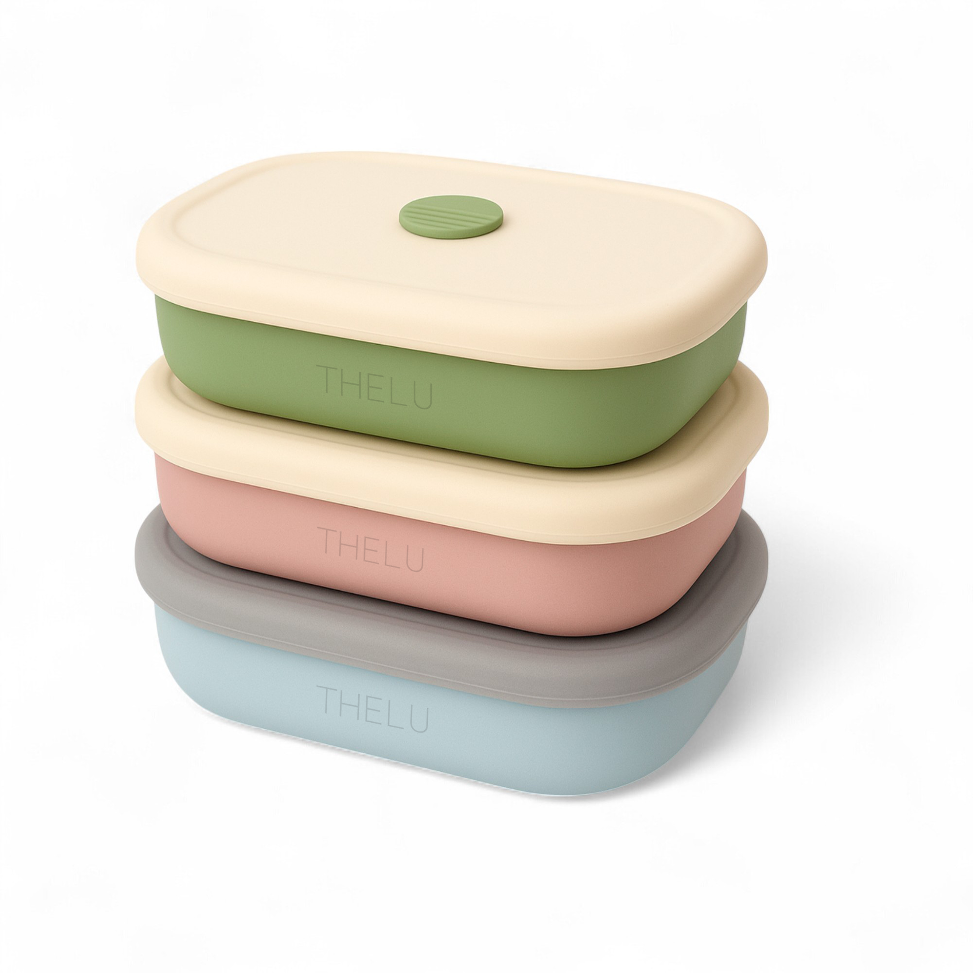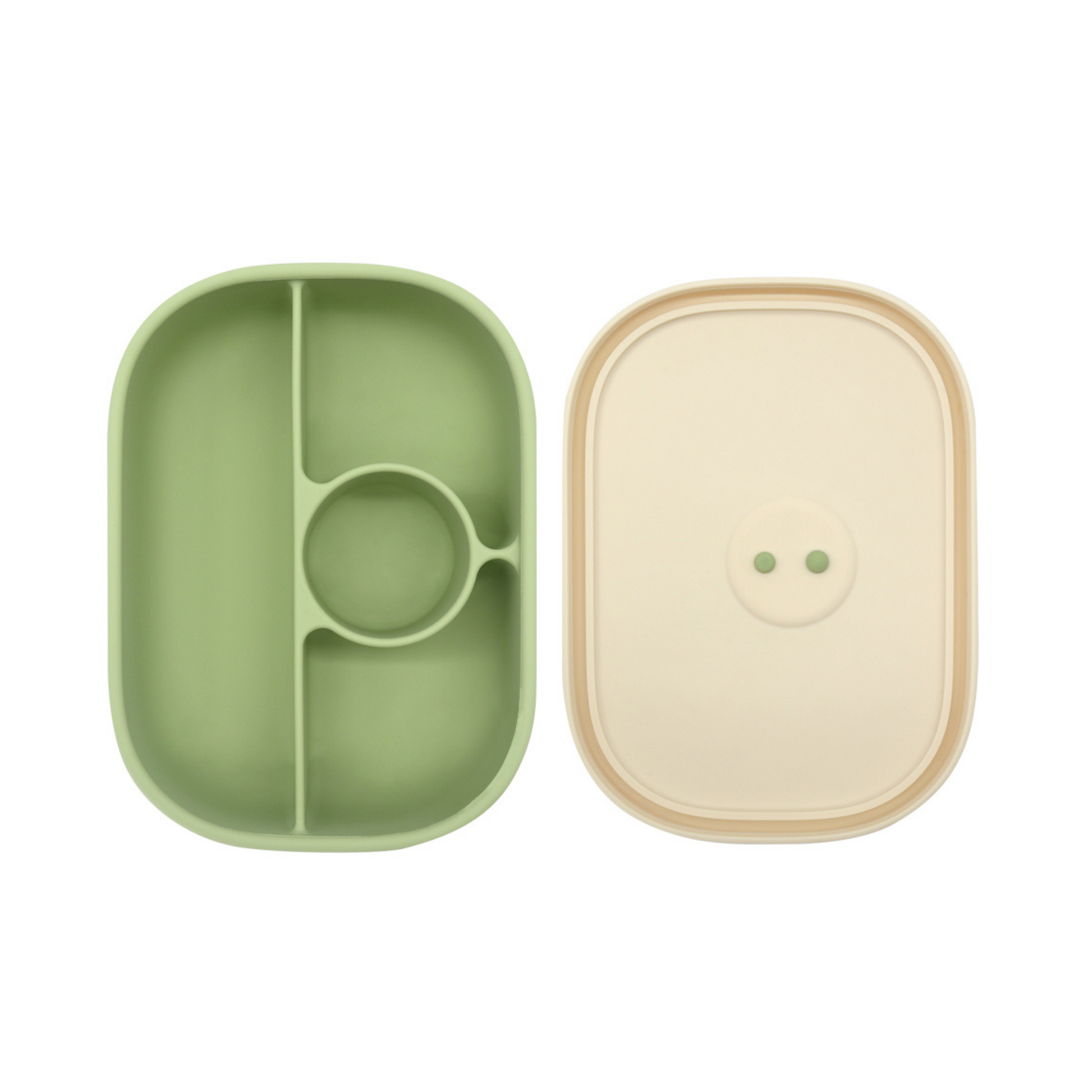 お子さまの「自分で食べたい」を応援する、THELUのもぐもぐBOX。やさしい色合いとまるみのあるフォルムが魅力の、シリコーン製ランチボックスです。しっかり閉まるフタと仕切り付きのデザインで、離乳食期から幼児期まで、幅広いシーンで活躍します。